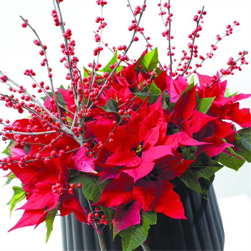 Ilex-Zweige (auch als Stechpalme bekannt) haben vor allem in Großbritannien und Skandinavien schon lange einen festen Platz in der Weihnachtsdekoration. Doch auch bei uns werden sie immer beliebter. Schließlich vereinen sie die Weihnachtsfarben Rot und Grün an einem Zweig und eignen sich ganz hervorragend zum Dekorieren und Basteln. Die über und über mit roten Beeren behangenen Zweige passen, mal mit, mal ohne Blätter, hervorragend zu Weihnachtssternen oder Amaryllis. In der Vase sind sie ein sensationeller Solist, aber auch ein perfekter Begleiter für Rosen, Amaryllis oder Kiefernzweige. Und wer mag, kann auch einzelne Zweige mit in die Erde eines Weihnachtssterns setzen.