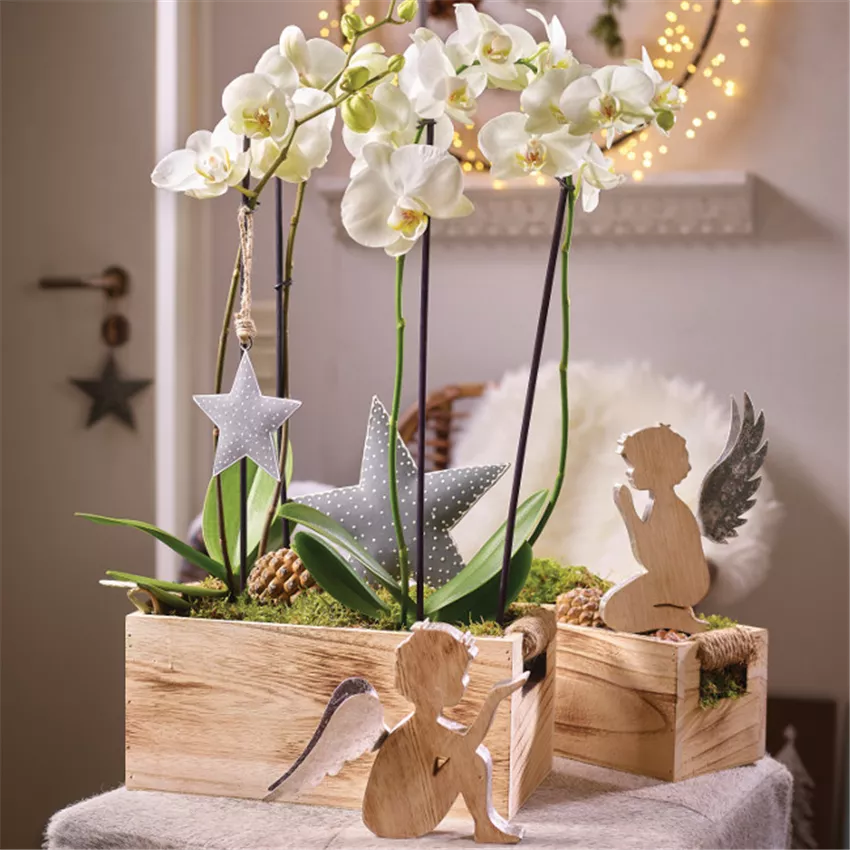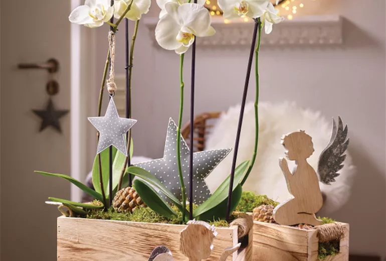 Es gibt viele wunderschöne Dekorationsmöglichkeiten mit Pflanzen und Schnittblumen: Im Topf, als Gesteck und auch als kleiner oder üppiger Strauß werden sie zu festlichen Hinguckern im Haus. Pflanzen wirken besonders schön, wenn sie in einen hübschen Übertopf gesetzt werden und mit edlen oder verspielten Dekorationselementen wie Weihnachtskugeln, Holzsternen oder Zapfen verschönert werden. Unsere Floristen in unseren Bellandris Gartencentern geben sich immer viel Mühe, die neuesten Trends und Ideen mit den unterschiedlichen Pflanzen umzusetzen. Schließlich sind Pflanzen wie Orchideen (zum Beispiel einzeln oder im Trio in einen dekorativen Holzkasten gepflanzt) und festlich in Szene gesetzte Sträuße eine stimmungsvolle Deko für Zuhause, aber auch ein wunderschönes Weihnachtsgeschenk.