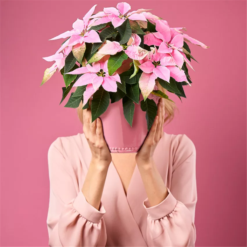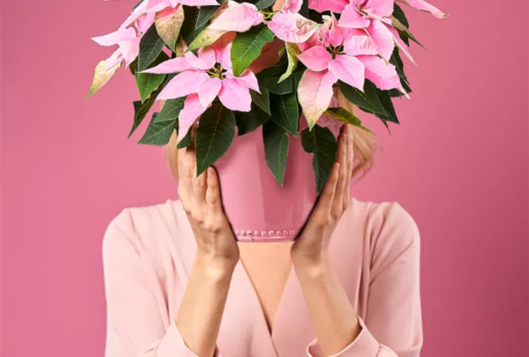 Der Weihnachtsstern ist einer der Klassiker unter den Weihnachtspflanzen. Typischerweise kommt er mit roten Blättern daher, mittlerweile gibt es aber auch viele weiter Farben wie Weiß, Pink, Creme oder Apricot. Auch mehrfarbige, gesprenkelte oder mit Glitter besprühte Varianten sind aus der Advents- und Weihnachtsdeko kaum noch wegzudenken. In einem schönen Übertopf kommen sie besonders schön zur Geltung und zelebrieren ihren attraktiven Auftritt zur Weihnachtszeit. Dabei gibt es viele Möglichkeiten: Ton in Ton, schlicht, geradlinig und dezent oder auch herrlich üppig. Kleine, sogenannte Mini-Varianten können auch wunderbar in die Tischdeko oder in die Mitte eines Kranzes integriert werden.