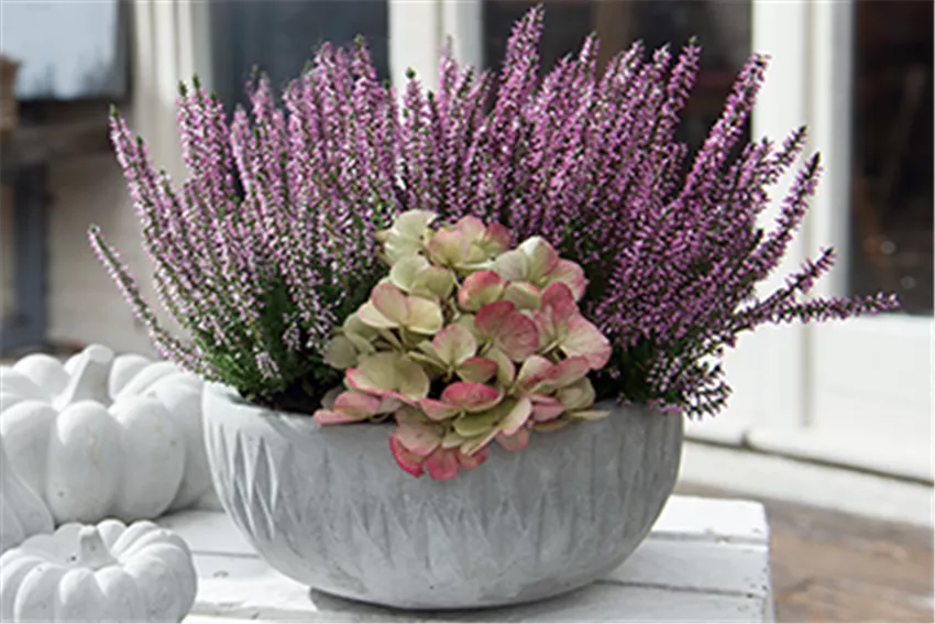 Wenn andere Balkonpflanzen aufgrund niedriger Temperaturen nicht mehr gedeihen, leuchten die knospenblühenden Sorten der Besenheide, auch als Knospenheide bekannt, noch bis in den Dezember in Weiß, Rosa oder Purpur. Daher eignet sich der Dauerblüher besonders für herbstliche Pflanzideen, die richtig lange halten. Wir zeigen drei tolle Herbstdekorationen mit Heide, die kinderleicht nachgemacht werden können.